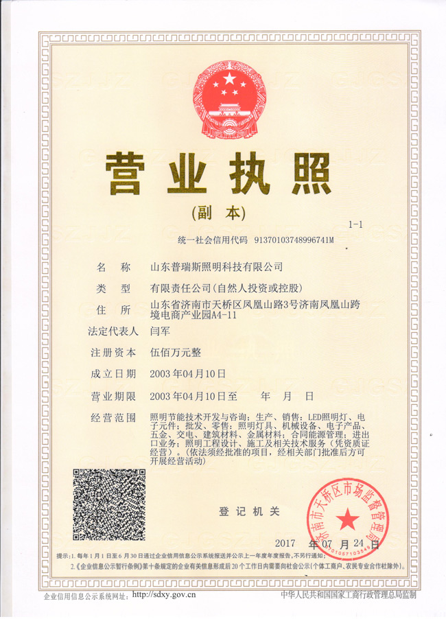 普瑞斯營業執照